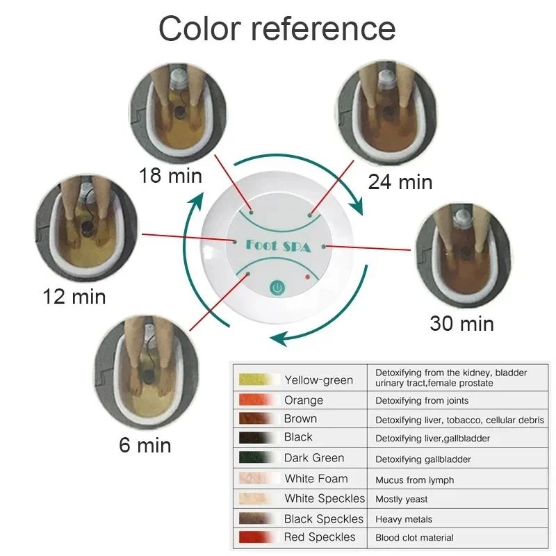 BioCharge Foot Detox is a special foot bath that uses water and a gentle electric current to create ions. These ions help draw out toxins from your body through the pores in your feet.